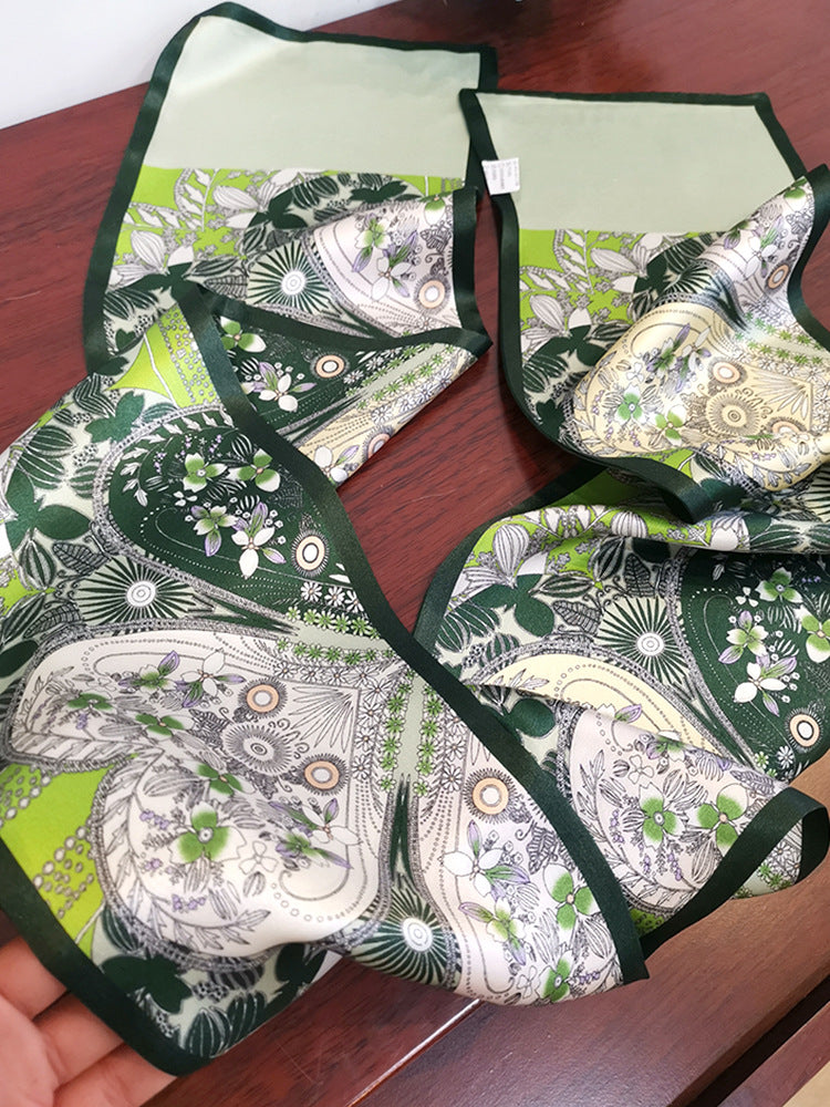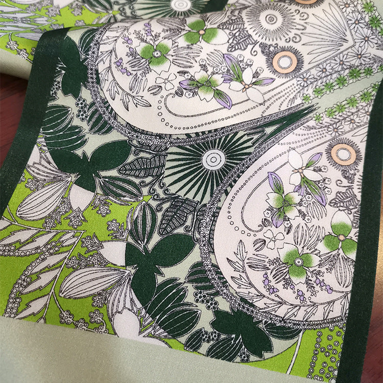 Reversible 100% Mulberry Silk Scarf – Green Paisley Floral Print
